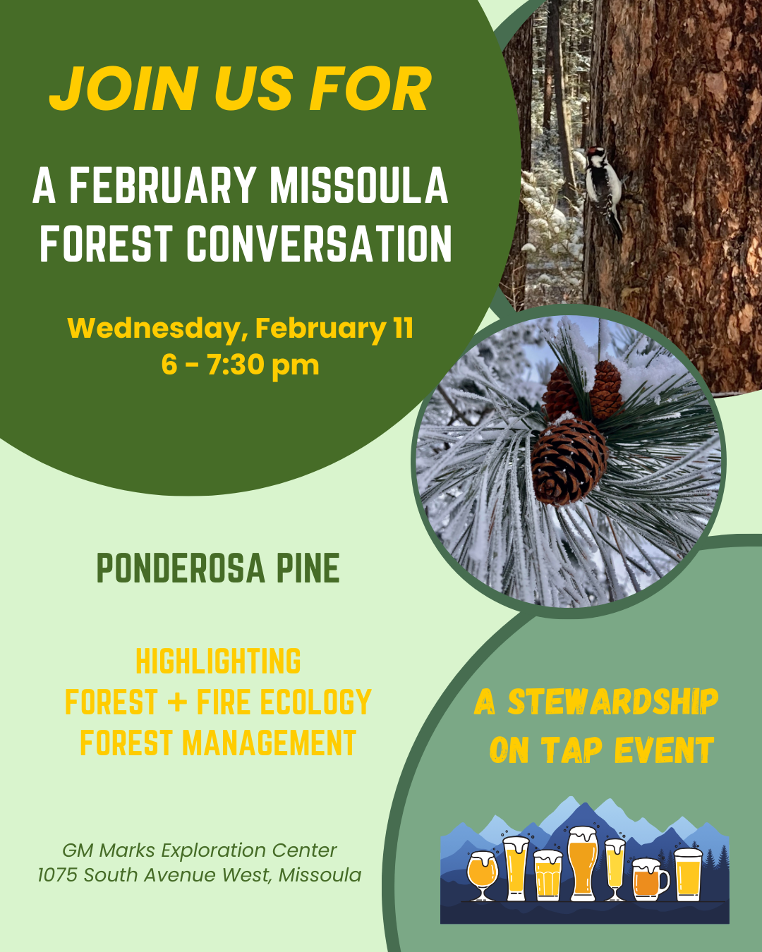 | The Missoula Area Chamber of Commerce’s Forest Resources Committee invites the public to attend the second 2026 Forest Conversations event on Wednesday, February 11, from 6:00–7:30 p.m., featuring an in-depth discussion on ponderosa pine forests and the unique challenges of managing local ponderosa pine ecosystems. February’s conversation will feature three local experts: Sharon Hood, Research Ecologist at the USDA Forest Service Rocky Mountain Fire Sciences Laboratory Beth Dodson, University of Montana Professor of Forest Operations Shawn Morgan, Forester at Thompson River Lumber The evening’s presentations and conversations will highlight the importance of ponderosa pine in our local forest landscapes and explore the ecological role of ponderosa pine, fire dynamics, management approaches, and ponderosa pine products. The event will be held in the Balsamroot Conference Room at the Missoula Butterfly House building (GM Marks Exploration Center), located at 1075 South Avenue West, Missoula. This event is free and open to the public, and complimentary beverages will be provided. Looking ahead to next month, the March Forest Conversations event will take place on Wednesday, March 11 and will focus on tribal perspectives on forest management, featuring a panel of speakers from the Confederated Salish and Kootenai Tribes. The Forest Conversations series is co-hosted by the Missoula Area Chamber of Commerce’s Forest Resources Committee and the Missoula Conservation District and is designed to foster community dialogue around forest stewardship, science, and management in western Montana. |