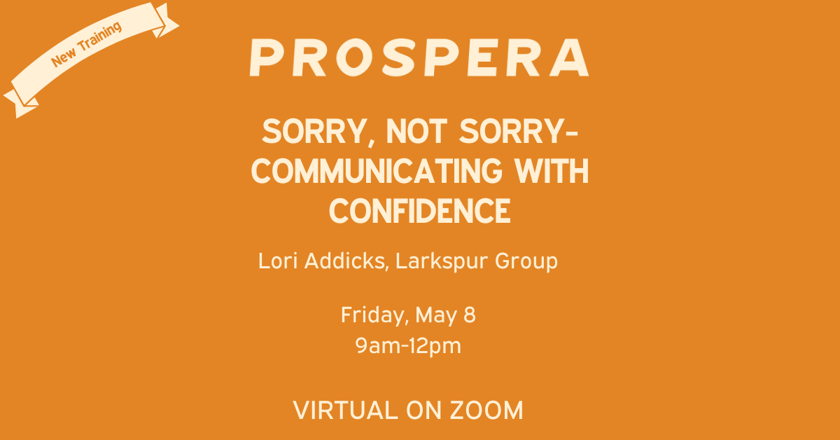 May 8 Sorry, Not Sorry-Communicating with Confidence – 5/8 – (VIRTUAL) 9:00 am - 12:00 pm Online Webinar Event Details Get Directions
