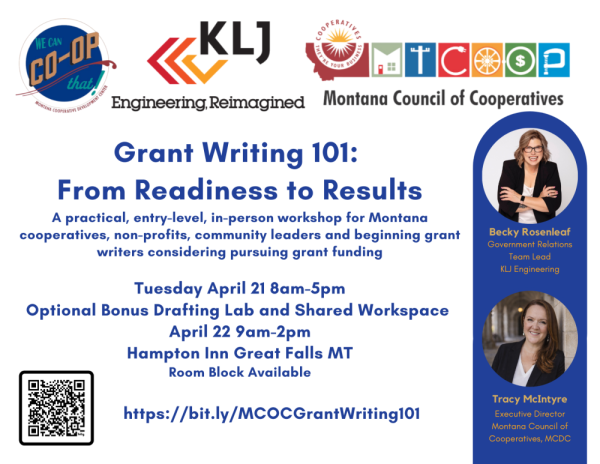 Whether you are new to grant writing, looking to sharpen your skills, or hoping to strengthen your organization’s funding strategy, this training is designed to offer practical guidance you can put to use right away. Participants can expect a grounded, real-world learning experience from presenters who understand Montana organizations, community needs, and the realities of pursuing competitive funding.